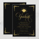 Announce a proud academic milestone with this elegant graduation announcement, designed with a rich black background, refined gold typography, and classic decorative accents. Featuring ornate script lettering, a graduation cap emblem, and formal layout styling, this invitation is ideal for celebrating a college or university graduate in a timeless, sophisticated way.