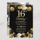Elegant Black Gold Glitter 16th Birthday Photo Inbjudningar