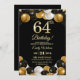 Elegant Black Gold Glitter 64th Birthday Party Inbjudningar