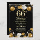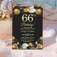 Elegant Black Gold Glitter 66th Birthday Party Inbjudningar