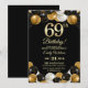 Elegant Black Gold Glitter 69th Birthday Party Inbjudningar