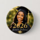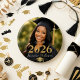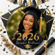 This graduation design features a bright close-up portrait with bold gold class year text, a scripted name, and a small graduation cap accent in a polished black and gold layout. The formal color palette keeps the portrait clear and easy to read while giving the design a refined graduation look. The photo and class year can be changed for the graduate shown. It is a strong portrait-based graduation design for ceremony day and class year celebration.
