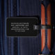 A simple stylish monogram luggage tag with a gold script initial over your name in white sans serif type. Contact information on the back.