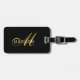 Elegant Black Gold Monogram Script Initial Bagagebricka