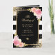 Elegant black and white striped floral wedding program featuring watercolor blush pink, ivory and peach flowers and gilded greenery. Matching items available.
