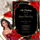 Elegant Black Gold Red Roses 18th Birthday Debut Inbjudningar