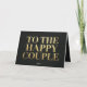 Celebrate the newlyweds or the newly engaged with this sophisticated and modern greeting card. The design features the phrase "To The Happy Couple" in a stunning, rustic gold typography effect set against a solid black background. Its minimalist aesthetic makes it a versatile choice for weddings, engagements, or anniversaries.