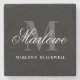 Snyggt, Elegant Monogram Black White Grått Script Namn-sten underlägg för ditt nya hem- eller sovrum. En tankfull gåva från personligen till hennes födelsedag, mors dag eller en ny hemmauppvärmning i party.