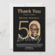 Elegant Black Guld 50 på födelsedagen - tack för ditt kort. Höj milstolpen firande med ett tack-kort som symboliserar underskattad elegans och minimalism i chicen. Vårt svarta och guld-tema utstrålar sofistikering och skapar en förfinad atmosfär för er speciella dag. Anpassningsbarnas fotofunktion lägger till en personlig som gör att varje inbjudan är ett unikt och omhuldat minne. Konstruktionens enkelhet ökar dess allmänna dragningskraft, skapar ett djärvt påstående genom rent linjer och en smakfull blandning av svarta och guld. Gå med oss för ett firande där varje detalj är genomtänkt för att återspegla den skönhet som man finner i enkelhet och skapa minnen som är lika tidlösa som själva tillfälle.