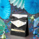 Elegant, vintage, boho chic black and white bröllopsbox, med gyldad guld och silver blommigt snöre.
