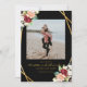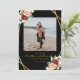 Uppdatera ditt favoritfoto till den här eleganten svartvitt och guld bröllop spara datum-annonskort med guld geometriska ram. Dekorerad med vackra burgunda och vita blommigtar och botaniska gröntar. Anpassade guld-typografi genom att spara datumkortet. Baksidan av inbjudan har en fantastisk bädd av samma blommigtar