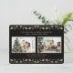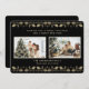 Elegant svart och guld fotokort för helgdag med två foton som lagts till med guld holly och bär. Anpassa det här fotokortet enkelt med dina favoritfoton och namn i helgdag.