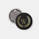 Den här magneten för personlig i elegant har ett faux guld monogram med en guld lagerkrans mot en svart bakgrund. Designad av Susan Coffey.
