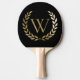 Den här pingpongpaddeln i eleganten har ditt monogram i Faux guld, som är inramat av en passande guld-lagerkrans på en vanlig svart personlig. Designad av Susan Coffey.