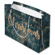 Elegant Black Guld Marble Effect God jul Large Gift Bag. Lägg till lite lyx i din helgdag presenting med den här Personligen Elegant Black & Guld Marble God jul Large Gift Bag. Med en rik marmor struktur med nedsmutsande guld-accenter och festlig typografi, är denna säck för snyggt perfekt för att på ett sofistikerat sätt emballera stora Julklapp. Anpassa med din familj namn eller med ditt personliga meddelande för att göra den verkligt unik. Den här återanvändbara och miljövänliga presentsäcken är perfekt för firande, julfester eller företagsgåvor, som är skapad från premiumväska pappert med ditt val av glansig eller projektion. Den här presentpåsen i elegant har en svart och guld marmoreffektbakgrund med elegant skriven i söt typography stil med guld stjärnor.