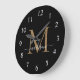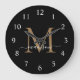 Elegant Black Guld Monogram Feminine Girly Script Namn Large Clock