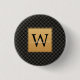 Elegant Black Guld Monogram Initial Script Snyggt-knapp. Har en lyxsvart bakgrund och guld diamant mönster.