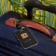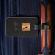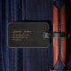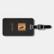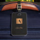 Luxury elegant modern monogram och namnteckning namn personlig bagagetagg med en faux metallic guld kopparruta med namn inledande över en svart läderliknande bakgrund (TRINTED STRUKTUR). ++++++++++++ Kan vara en snyggt-, bröllop-, jul- eller andra tillfälle- eller jubileumsgåvor.