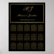Elegant Black Guld Monogram Script Bröllop-säten Poster