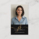 Elegant Black Guld Monogram Script Initialer Photo Affärskort. Modern, snyggt, anpassningsbar färg lodrät-affärskort med ett calligraphy swash-skript för elegant monogram med ett eller två brev i ditt val av text och bakgrundstext färger (visas i guld initialer och vit text på svart bakgrund). ASSISTANS: Om du vill ha hjälp med designändringar eller om du vill koordinera objekt kontaktar du designern INNAN ORDERING via fliken Zazzle Chatta MESSAGE eller e-postmeddelandet makeitaboutyoustore@gmail.com.
