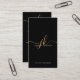Elegant Black Guld Monogram Script Initialer Affärskort. Modern affärskort, snyggt, anpassningsbar färg-lodrät med ett monogram för calligraphy swash-skript för elegant med ett eller två brev i ditt val av text och färger för bakgrund (visas i guld initialer och vit text på svart bakgrund). ASSISTANS: Om du vill ha hjälp med designändringar eller om du vill koordinera objekt kontaktar du designern INNAN ORDERING via fliken Zazzle Chatta MESSAGE eller e-postmeddelandet makeitaboutyoustore@gmail.com.