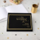 En Elegant svart och guld gäst bok för bröllop. Svart med dubbla guld ramar på framsidan och baksidan. Personlig med namn i bruden och brudgummen och deras datum i bröllop. Baksidan säger: "Lyckligtvis alltid efter början här". Den här texten är helt redigerbar och kan eventuellt ändras eller tas bort till kostym efter dina behov. Detta kommer att bli en trevlig keepy om ni uppmuntrar era gäster att inte bara lämna namn och adress, utan även deras bästa önskemål eller ord av visdom för de nyfödda.