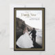 Lägg till ditt favoritfoto från bröllop längst fram på det här platta tackkortet. Det är perfektens sätt att tacka dina gäster för att de har delat din speciella dag och för deras generösa gåvor. Dubbla guld ramar på en svart bakgrund ram ditt foto på ett vackert sätt. Tillbaka lämnas tomt så att du kan skicka dina tackkort och anpassa dem för varje gäst.