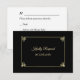Svarskortet i bröllop har en söt guld gräns ram med hörnförsköning. Din anpassningsbar står i guld i centrum. Bilder och text placeras på en dramatisk svart bakgrund. Svarskortets baksida är vit för att din svarande lätt ska kunna markera och innehåller ett område där du kan välja menyer. All text är anpassade, och om du behöver hjälp, tveka inte att kontakta oss via vårt e-postmeddelande till adress. Vi är alltid lycklig för att hjälpa till! Det här kortet matchar Eleganten Black Guld Ram Bröllopsinbjudningar i vår butik.