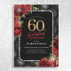 Elegant Black Guld Red Blommigt 60 Födelsedagsfest inbjudan. Den här designen har en elegant som blandar svart, guld och rött med en sofistikerad blommigt motiv. Bakgrunden är en lyxig svart, som på ett vackert sätt står i kontrast till det invecklade motivet för guld och röd blommigt som ram och kant. Elegant guld och röd typografi används, vilket ger en aning opulens och förfining. Den harmoniska kombinationen av detta färg och den känsliga blommigten skapar en inbjudan och firande känsla, perfekt för att markera en viktig milstolpe-födelsedag.