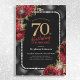 Elegant Black Guld Red Blommigt 70 Födelsedagsfest inbjudan. Den här designen har en elegant som blandar svart, guld och rött med en sofistikerad blommigt motiv. Bakgrunden är en lyxig svart, som på ett vackert sätt står i kontrast till det invecklade motivet för guld och röd blommigt som ram och kant. Elegant guld och röd typografi används, vilket ger en aning opulens och förfining. Den harmoniska kombinationen av detta färg och den känsliga blommigten skapar en inbjudan och firande känsla, perfekt för att markera en viktig milstolpe-födelsedag.