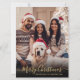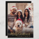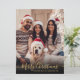 Modern Elegant Black och Guld Script 2 Photo God jul Script Helgdag Card. Den här snygga, enkla, minimalistiska, nyktra mallen för Julhälsningar kort innehåller texten "God jul" hälsning, som är skriven i ett vackert handskrivet, snabbt bytesfärgat kalligrafiskript i svan i guld på svart bakgrund i färg. På motsatt sida med din hälsning-meddelandemall med en liten hjärtdocka på vitt och en fotomall. Söt hälsningskort för din familj och dina vänner under julens Julhelg.