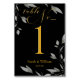 Ett svart och guld-skript med mjuk ulerande eukalyptus löv bordsnummer elegant bröllop och händelsekort som kan anpassas med vilket bordsnummer som helst. Bilden visas på båda sidor av detta kort.