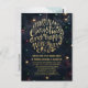 Elegant Black and Guld Cheers Nyårsafton Party Postcard Template. Inbjudan dina vänner och din familj till din chic Nyårsafton party med en elegant "God jul och Gott nytt år"-skriptpartinbjudan. Inbjudan innehåller modern guld-typografi och String Ljus-bakgrund. Alla textstorlekar i stil, färg, kan ändras för att passa dina behov!