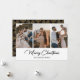Elegant Black and guld fotocollage God jul card med ett modernt skript och guld handflatan löv. Anpassa enkelt det här moderna fotokortet med dina foton och namn i helgdag.