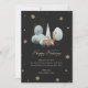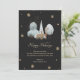 Svart och guld-fotokort med helgdag som innehåller snöflingor och en vinterscen med renar på framsidan och ett foto på baksidan. Anpassa enkelt det här helgdag till eleganten med foton och text.