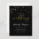 Inbjudningar i elegant bröllop som innehåller faux-guld-folie stjärna konetti och klassy-typografi mot svart bakgrund. "Bröllop" visas i snyggtens calligrafi och serif-teckensnittskombination. Du kan enkelt anpassa bakgrunden färg till kostym efter dina behov.