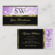 Elegant Black Lila Glitter Guld Monogram Visitkort