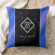 Lägg till en sofistikering i vardagsrummet eller sovrummet med dekorativ kudde, som har elegant på svarta marmor och royal blå folie bakgrunden. Omvänd visar identisk design. Anpassa genom att lägga till en första och (sur)namn! Design © W.H. Sim. Se mer på zazzle.com/expressionsoccasions