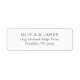This label features a clean, minimalist design with centered text on a white background. The black serif font provides an elegant and formal look, perfect for personalizing envelopes or packages. Its simple layout emphasizes clarity and sophistication, making it ideal for special occasions like weddings or formal events. The ample negative space enhances readability while maintaining a modern aesthetic.
