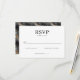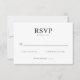 This elegant wedding RSVP card features a minimalist design with a clean white background and black text, creating a timeless and sophisticated look. The layout is simple yet refined, with bold serif typography for the "RSVP" heading and clear options for acceptance or decline, accompanied by checkboxes. A subtle cursive flourish adds a touch of elegance, while ample space allows for customization regarding the number of attendees. Perfect for formal occasions, this card conveys a mood of refinement and clarity, making it an ideal choice for couples seeking a classic and polished invitation suite.