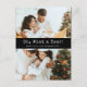 Ta med dig det nya året med den här unika Eleganten Black New Year Photo Helgdag Postcard. Det här trendiget innehåller "Oh, What A Year" i ett snyggt vintage skrivmaskin-teckensnitt, 2 familjefotografier och text på baksidan för att anpassa sig. Vit text mot svart bakgrund.