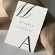 Modern svartvit och europeisk bröllopsinbjudan. Har fet monogramtypografi och minimal grafisk design. Enkel för att anpassa texten med all information om din speciella dag.