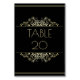 Ett Elegant Black and Guld Bröllop Bordsnummer Card. Kortet är designat med texten i guld färgad, inklusive: BORD 20, med accenter för guld färgad och gräns trim. Utformningen upprepas på baksidan. Om du vill anpassa dig infogar du bara ett nummer i varje beställt kort och ersätter exempeltexten.