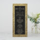 Lägg till stil och gnistra till ceremonin med eleganten svart och faux guld glitter bröllopsprogram. Har dubbelsidig textlayout - den ena sidan för din ceremoniinformation och den andra för din bröllopsfest och ett hjärtligt tack. Perfekt för glamorösa svartvinningsevenemang, vinterbröllop eller Nyårsafton firande. Fullt anpassade för att matcha din stora dag.