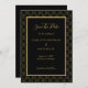Vackert spara bröllopsinbjudningarna med en modern geometrisk design. Den här klassiska svartan och guld om du sparar datumet har ett modernt skrivstil och ingår i en elegant formell bröllop-svit.