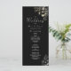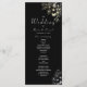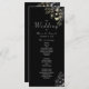 Vintage, elegant, boho, chic svart bröllopsprogram, med guldad silver och guld blommigt snöre.