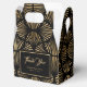 Elegant svart och guld mönstrad bröllopsförmånslåda med svart och guld handflatan löv. Anpassa enkelt de här bröllopsförmånslådorna med din händelseinformation. Våra lyxerbjudanden för bröllop är perfekt för din elegant svart och guld bröllopsfest och annat tillfälle. Med den här personligen tackar du för att du kan anpassa lådor till andra tillfälle, t.ex. möhippor, födelsedagsfester, babyduschar och så vidare.
