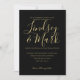 Elegant guld skriver namn över djärv svart bröllopsinbjudan med modern ordalydelse.