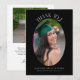 Ett enkelt och modernt tack från studenten som du vill skicka ut till dem som gratulerade dig, närvarade vid studentfesten, gav dig gåvor osv. Svart ovalfoto ram med en elegant typografi som säger "tack" överst. Du kan lägga till ett andra bild på baksidan och meddelandet kan redigeras.