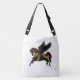 Carry a touch of timeless fantasy wherever you go with this Elegant Black Pegasus Carousel Horse Crossbody Bag. Featuring a hand-drawn digital airbrush design inspired by vintage carousel horses, this piece captures the beauty of a graceful black winged horse adorned in ornate details.